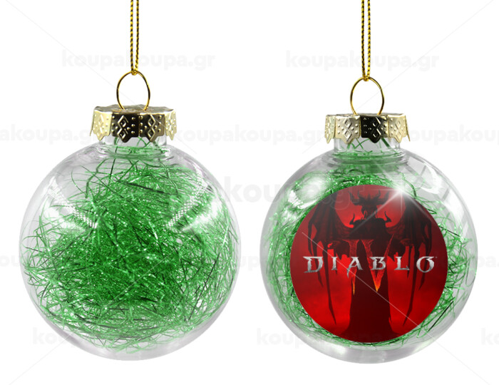 Diablo iv, Transparent Christmas tree ball ornament with green filling 8cm