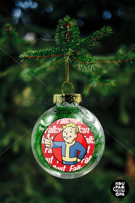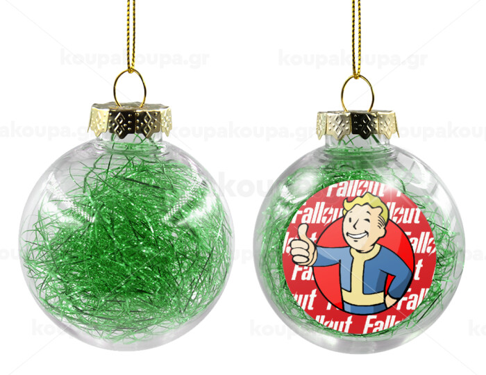 Fallout Vault Boy, Transparent Christmas tree ball ornament with green filling 8cm
