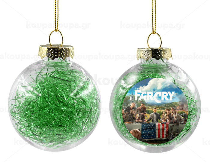 Farcry, Transparent Christmas tree ball ornament with green filling 8cm