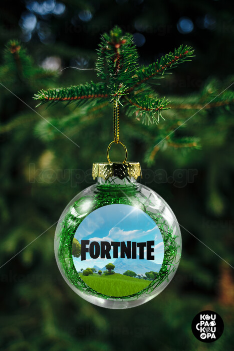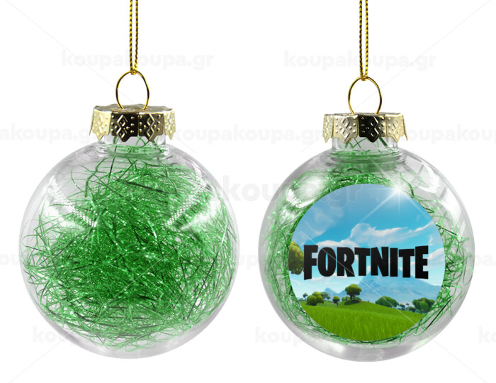 Fortnite landscape, Transparent Christmas tree ball ornament with green filling 8cm