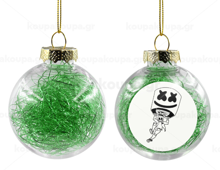 Fortnite Marshmello, Transparent Christmas tree ball ornament with green filling 8cm