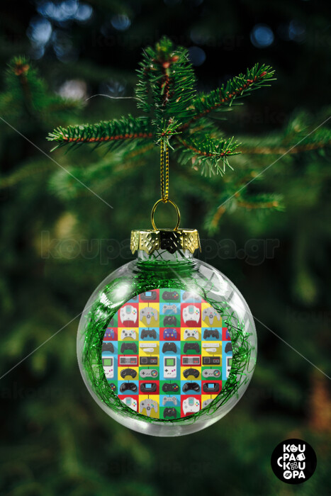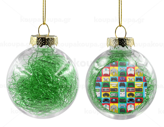 Gaming Controllers, Transparent Christmas tree ball ornament with green filling 8cm