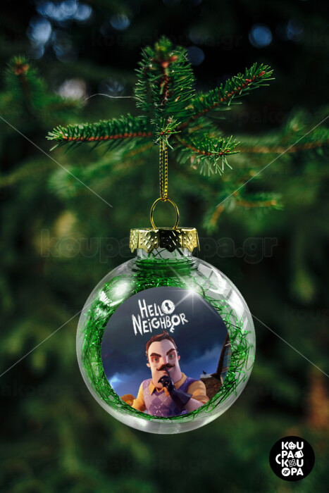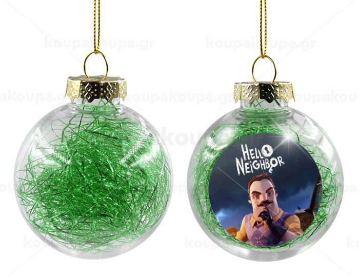 Hello Neighbor, Transparent Christmas tree ball ornament with green filling 8cm
