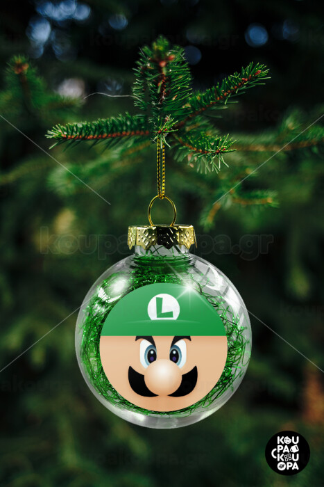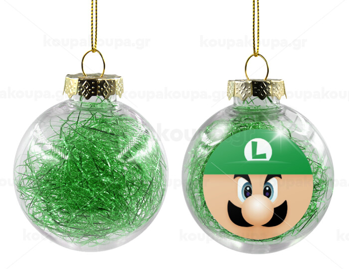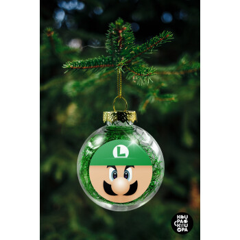 Luigi flat, Transparent Christmas tree ball ornament with green filling 8cm