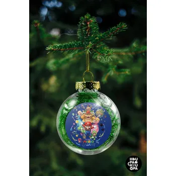Mario Galaxy, Transparent Christmas tree ball ornament with green filling 8cm