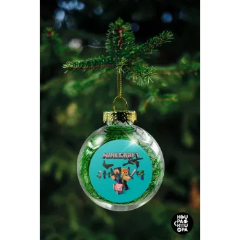 Minecraft Alex, Transparent Christmas tree ball ornament with green filling 8cm
