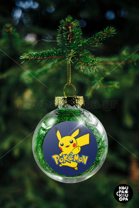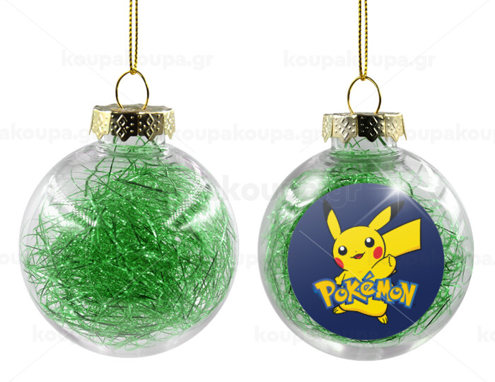 Pokemon pikachu, Transparent Christmas tree ball ornament with green filling 8cm