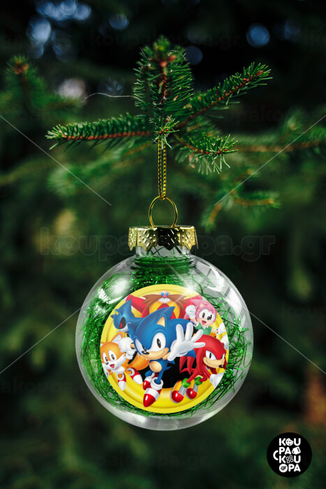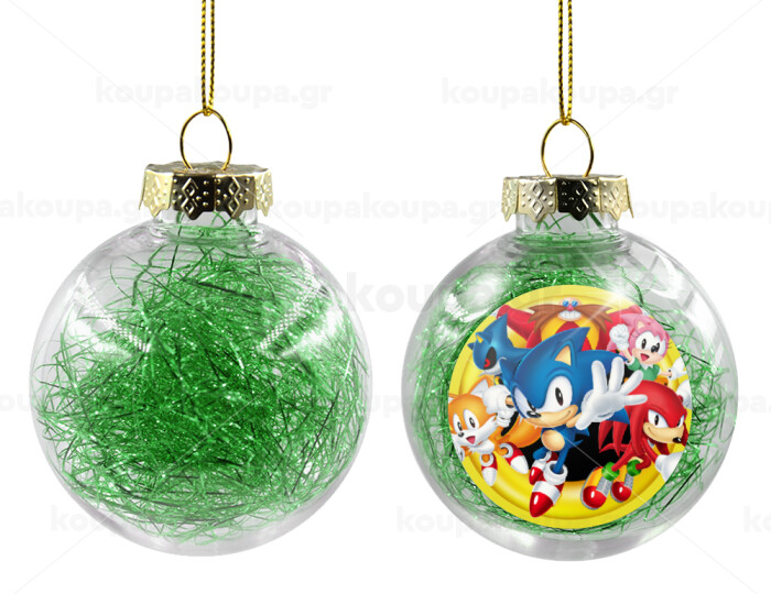 Sonic and friends, Transparent Christmas tree ball ornament with green filling 8cm