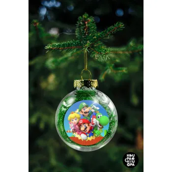 Super mario and Friends, Transparent Christmas tree ball ornament with green filling 8cm