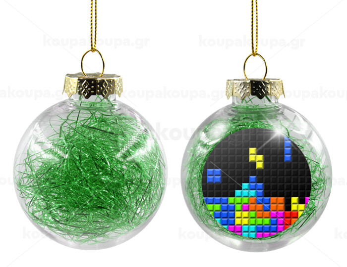 Tetris blocks, Transparent Christmas tree ball ornament with green filling 8cm