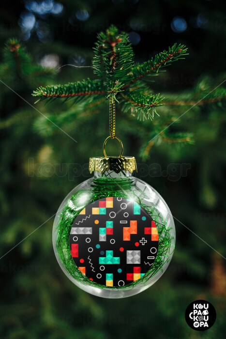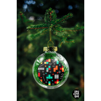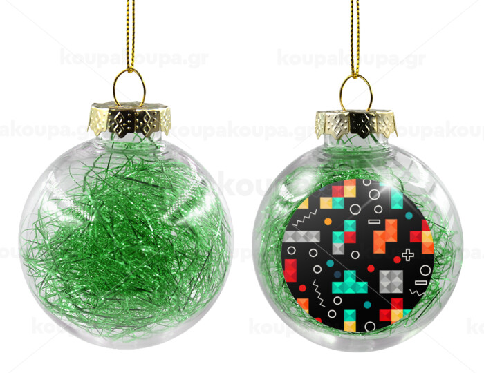 Tetris, Transparent Christmas tree ball ornament with green filling 8cm