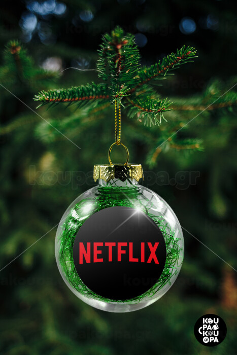 Netflix, Transparent Christmas tree ball ornament with green filling 8cm