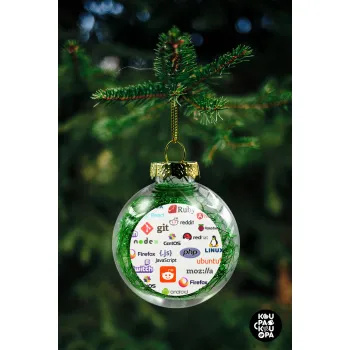 Tech logos, Transparent Christmas tree ball ornament with green filling 8cm