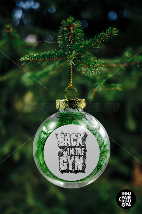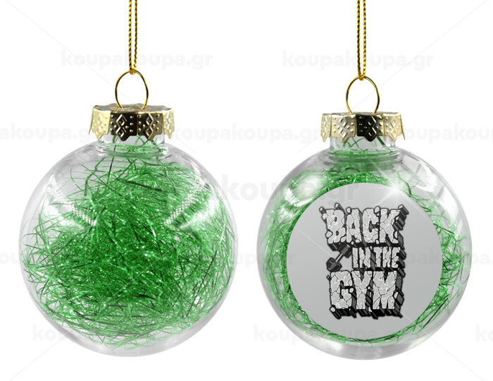 Back in the GYM, Transparent Christmas tree ball ornament with green filling 8cm