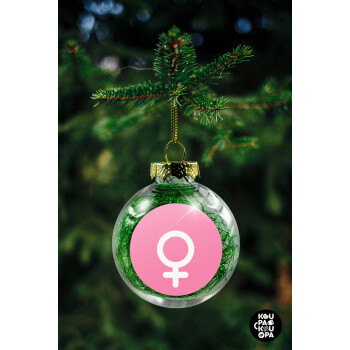 FEMALE, Transparent Christmas tree ball ornament with green filling 8cm