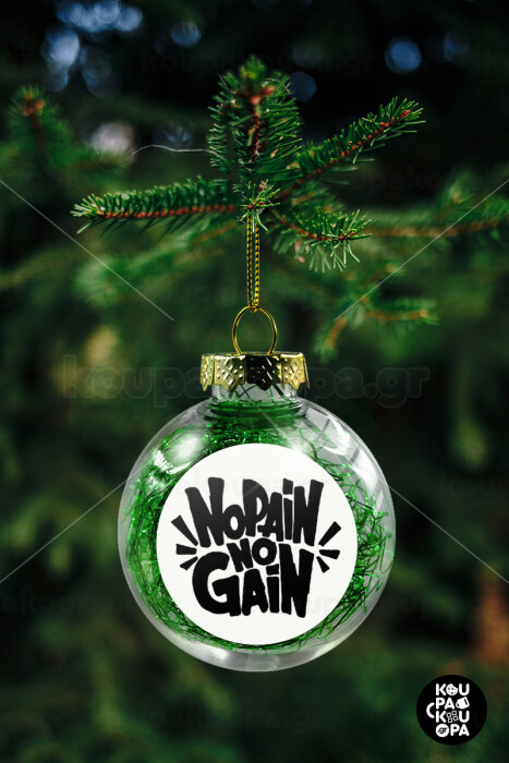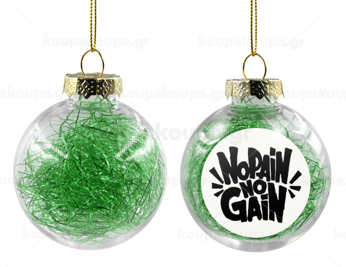 No pain no gain, Transparent Christmas tree ball ornament with green filling 8cm