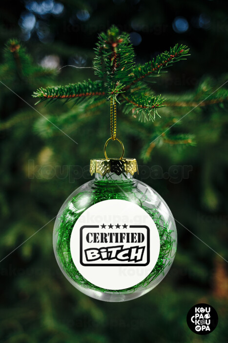 Certified Bitch, Transparent Christmas tree ball ornament with green filling 8cm