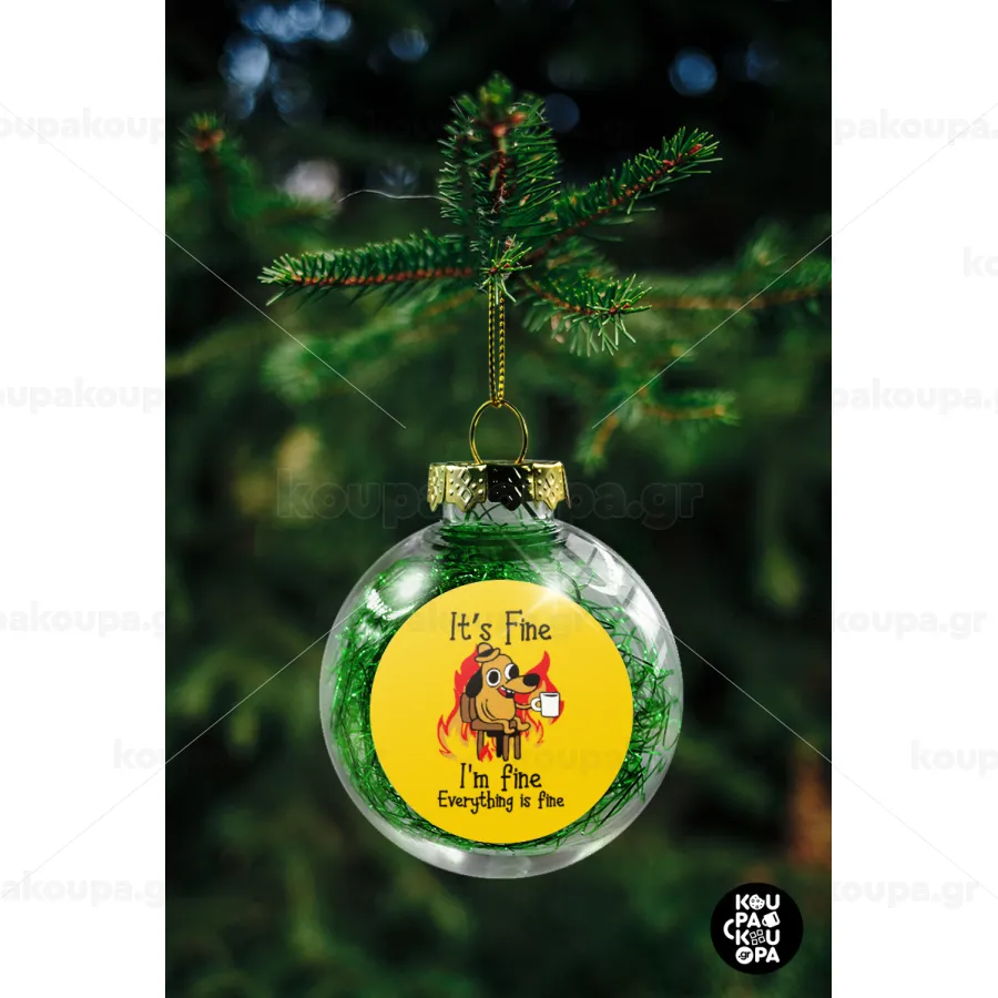 It's Fine I'm Fine Everything Is Fine, Transparent Christmas tree ball ornament with green filling 8cm