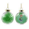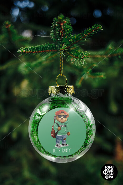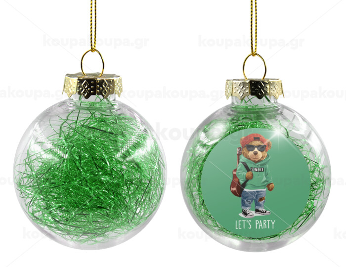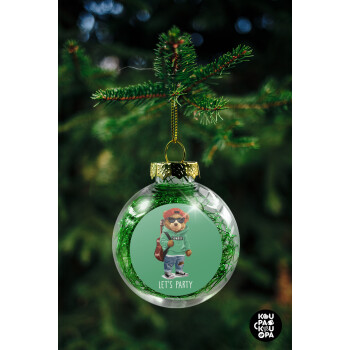 Let's Party Bear, Transparent Christmas tree ball ornament with green filling 8cm
