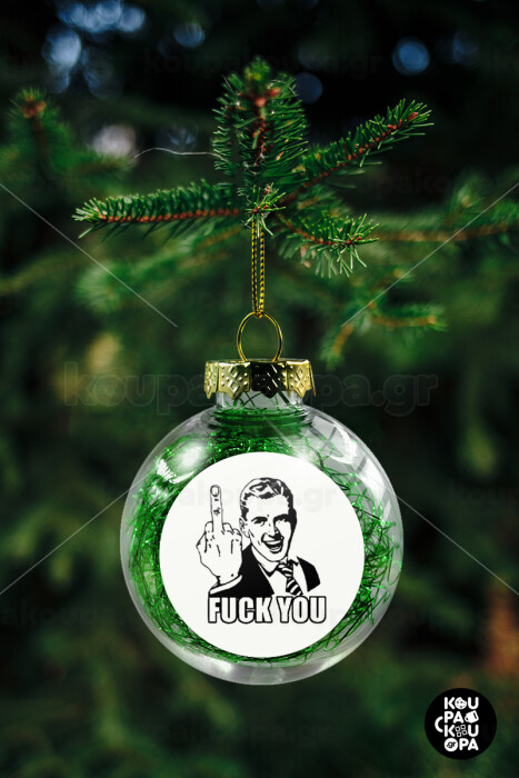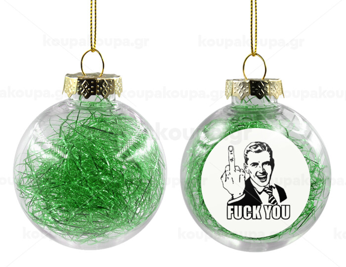 The finger, Transparent Christmas tree ball ornament with green filling 8cm