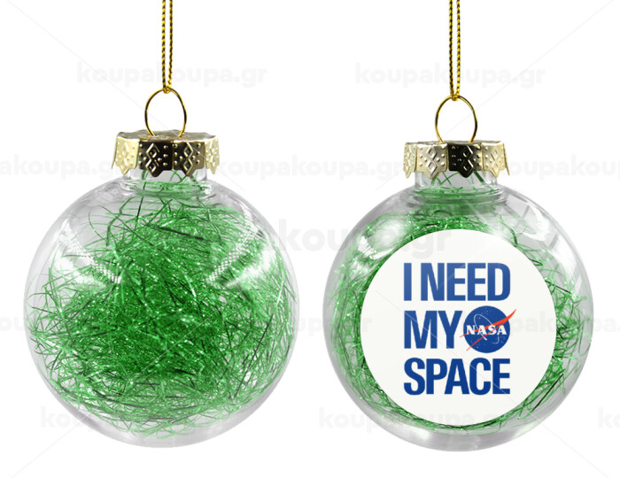 I need my space, Transparent Christmas tree ball ornament with green filling 8cm