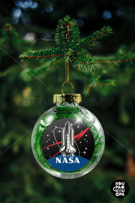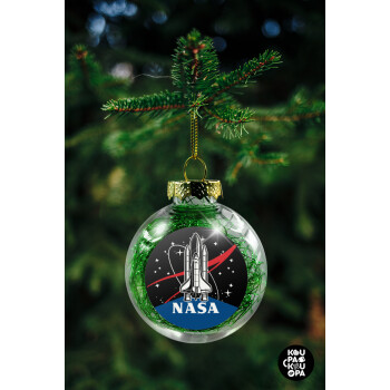 NASA Badge, Transparent Christmas tree ball ornament with green filling 8cm