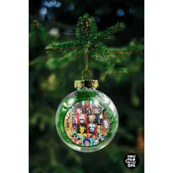 Warhol pop art, Transparent Christmas tree ball ornament with green filling 8cm