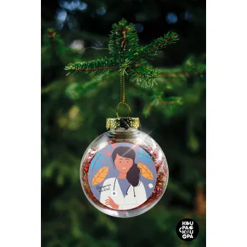 Doctor Thanks You, Transparent Christmas tree ball ornament with red filling 8cm