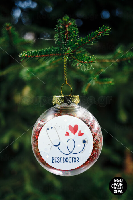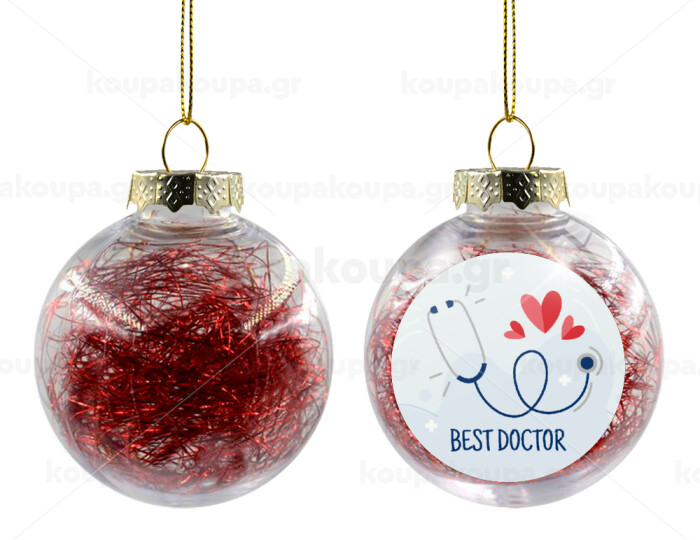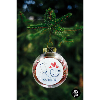 Best Doctor, Transparent Christmas tree ball ornament with red filling 8cm