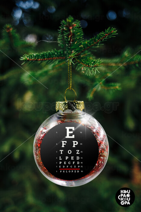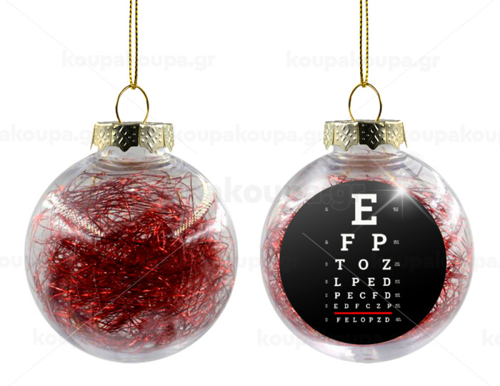 EYE test chart, Transparent Christmas tree ball ornament with red filling 8cm