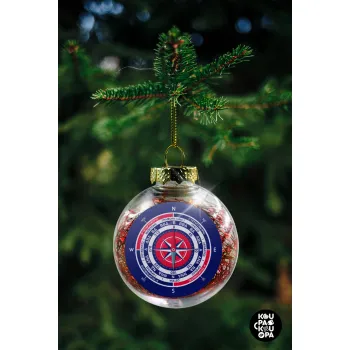 Wind compass, Transparent Christmas tree ball ornament with red filling 8cm