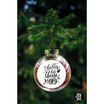 Better late than ugly, Transparent Christmas tree ball ornament with red filling 8cm