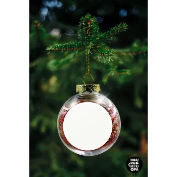 BLANK, Transparent Christmas tree ball ornament with red filling 8cm