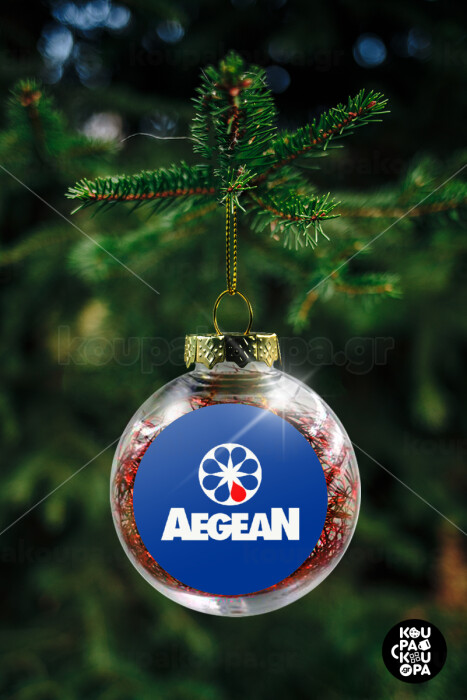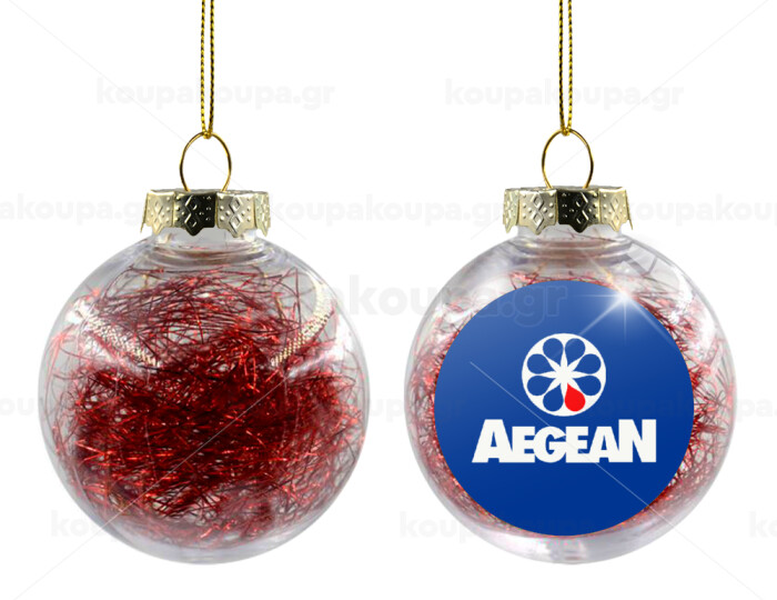 Πρατήριο καυσίμων AEGEAN, Transparent Christmas tree ball ornament with red filling 8cm