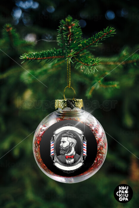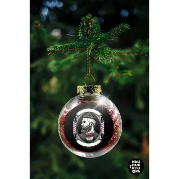Barber shop, Transparent Christmas tree ball ornament with red filling 8cm