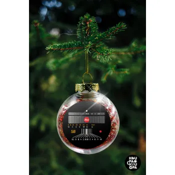 Leica Lens, Transparent Christmas tree ball ornament with red filling 8cm