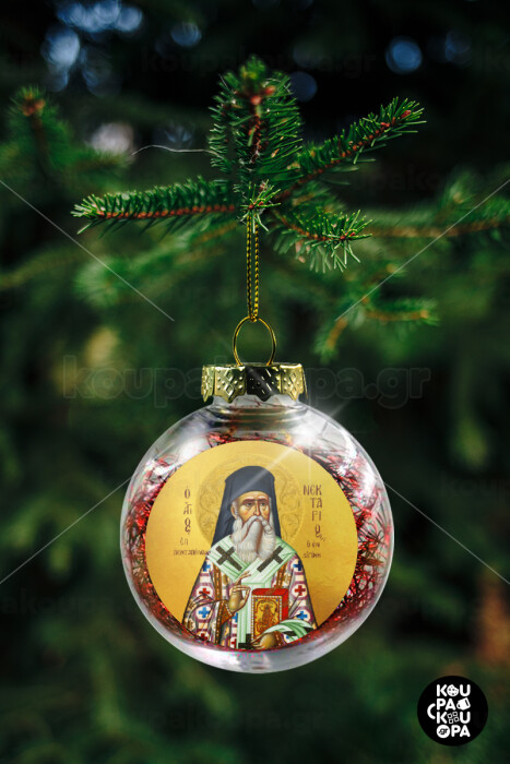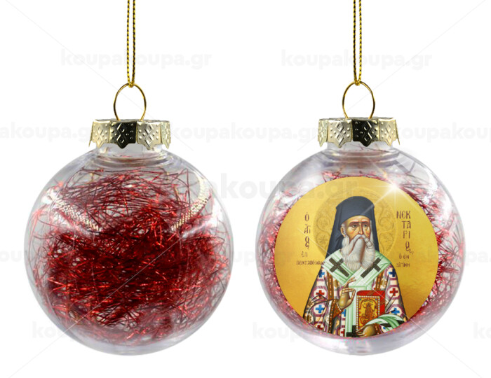 Saint Nektarios, Transparent Christmas tree ball ornament with red filling 8cm