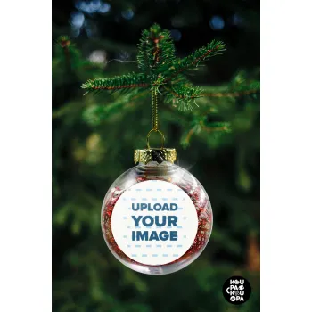 Χριστουγεννιάτικο διακοσμητικό στολίδι διάφανο με μεταλιζέ angel hair εσωτερικά σε μέγεθος 8cm, ελαφρύ σε μέγεθος για να μην κρεμάει το κλαδάκι, με κορδόνι στήριξης για τα κλαδάκια.