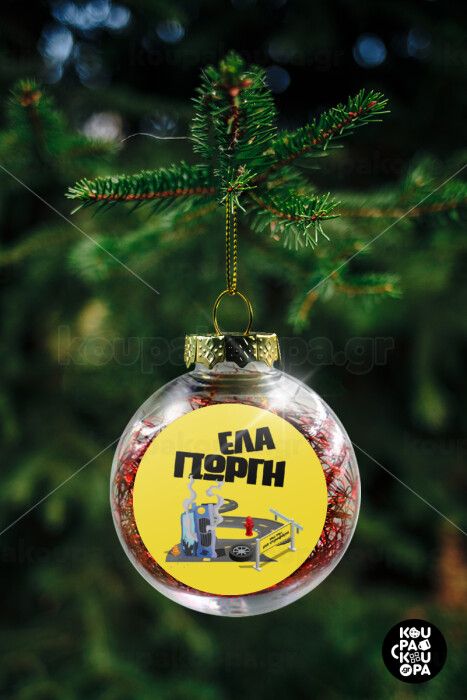 Έλα Γιώργη, πω πω μια στροφάρα, Transparent Christmas tree ball ornament with red filling 8cm