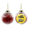 Χριστουγεννιάτικο διακοσμητικό στολίδι διάφανο με μεταλιζέ angel hair εσωτερικά σε μέγεθος 8cm, ελαφρύ σε μέγεθος για να μην κρεμάει το κλαδάκι, με κορδόνι στήριξης για τα κλαδάκια.