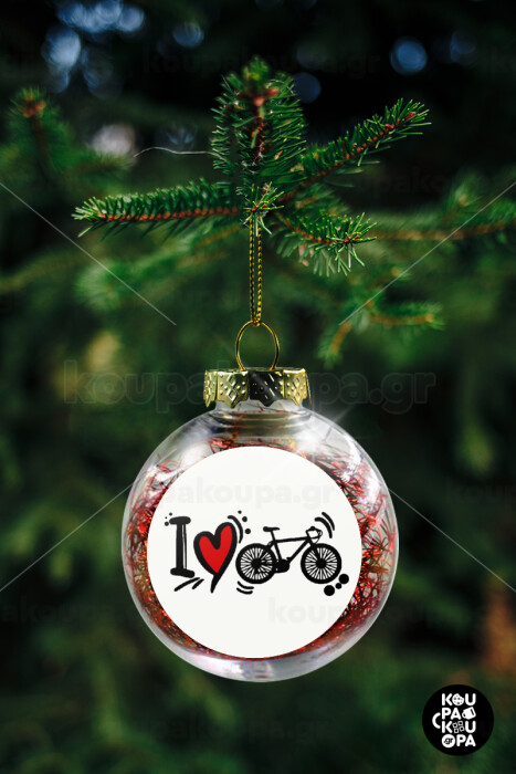 I love my bike, Transparent Christmas tree ball ornament with red filling 8cm