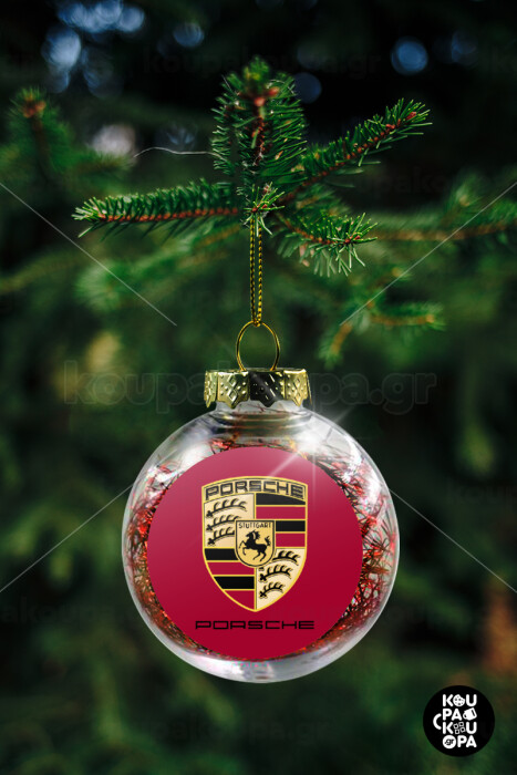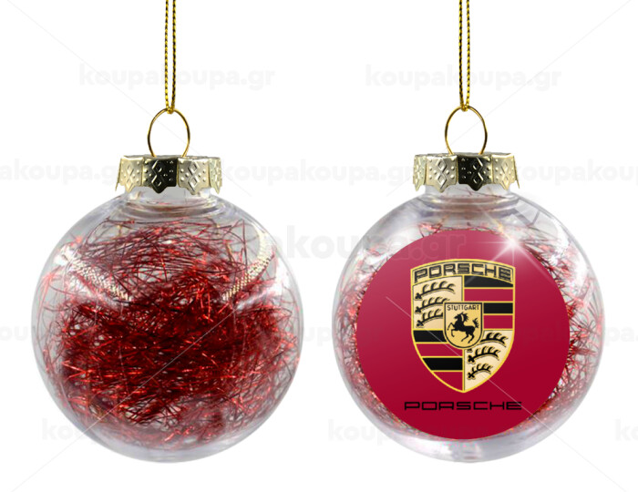 Porsche, Transparent Christmas tree ball ornament with red filling 8cm