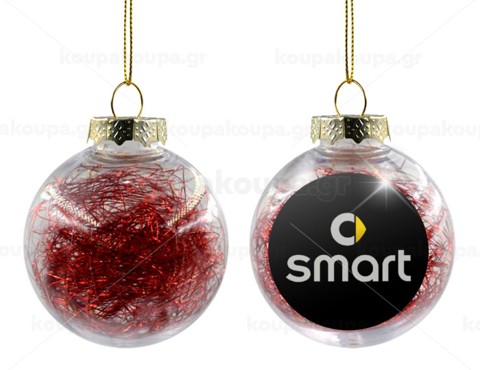 smart, Transparent Christmas tree ball ornament with red filling 8cm