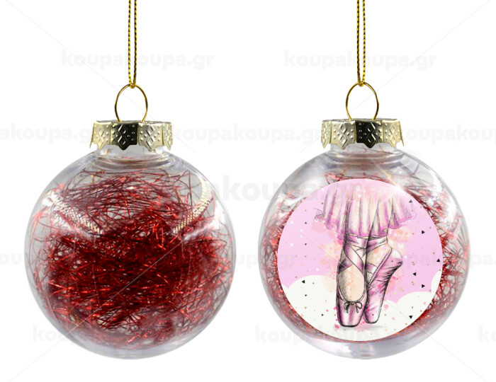 Ballerina shoes, Transparent Christmas tree ball ornament with red filling 8cm