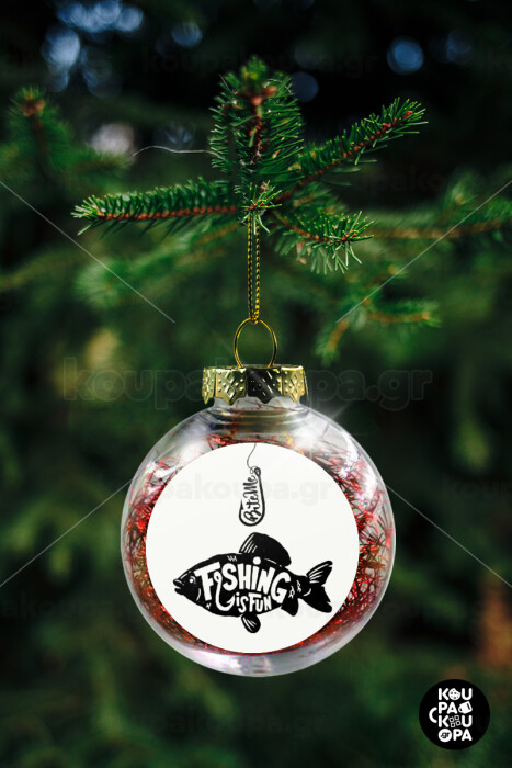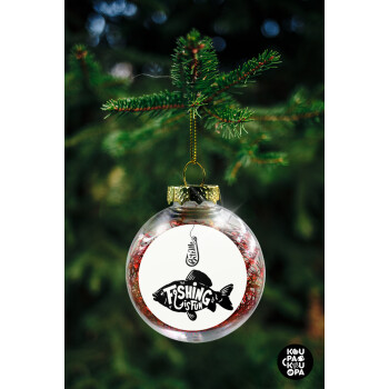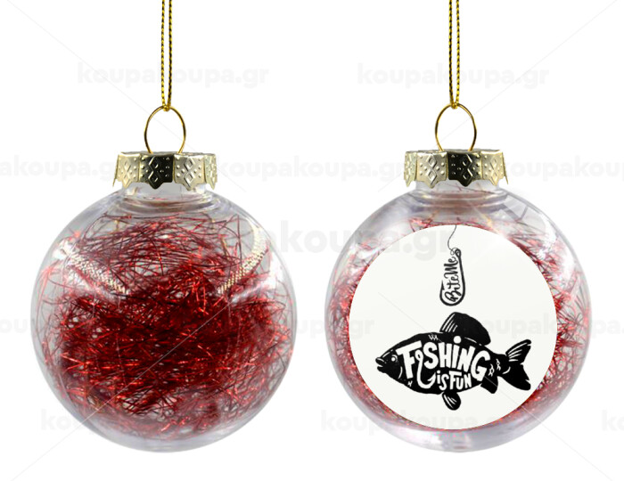 Fishing is fun, Transparent Christmas tree ball ornament with red filling 8cm
