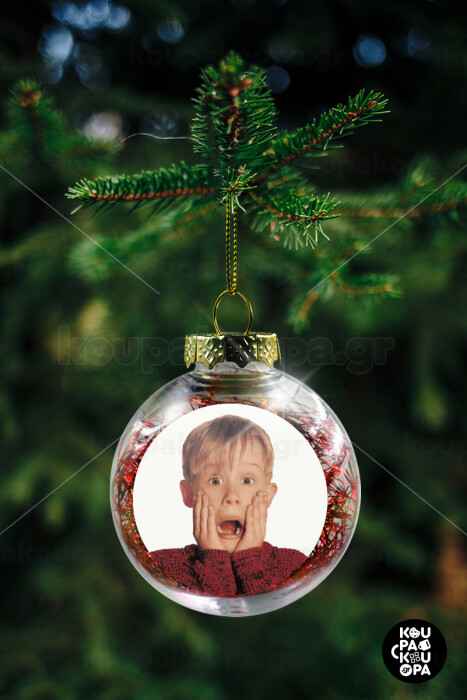 Μόνος στο σπίτι Kevin McCallister Shocked, Transparent Christmas tree ball ornament with red filling 8cm