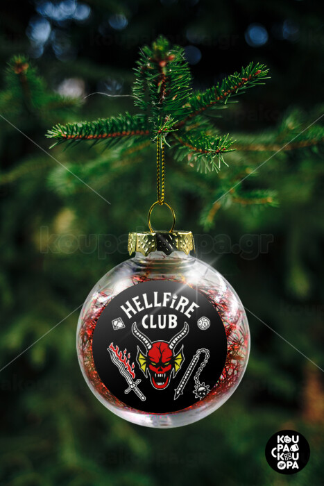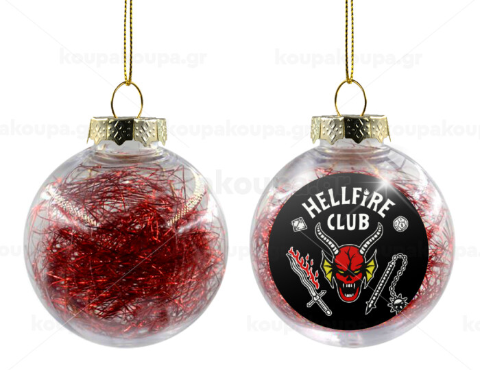 Hellfire CLub, Stranger Things, Transparent Christmas tree ball ornament with red filling 8cm