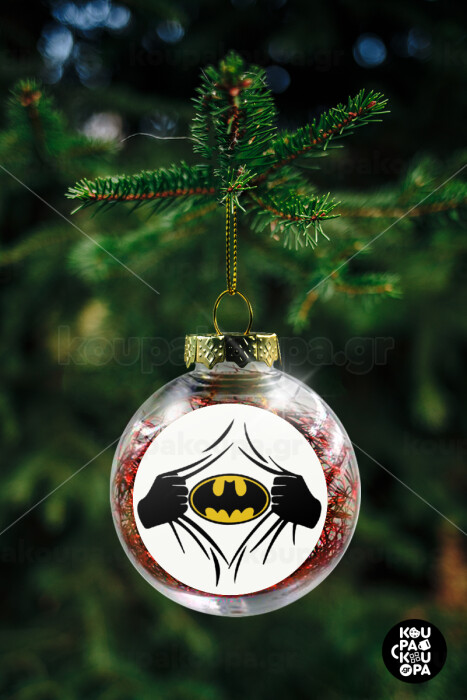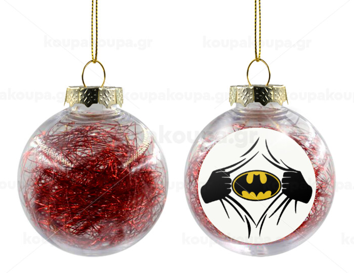 Hero batman, Transparent Christmas tree ball ornament with red filling 8cm