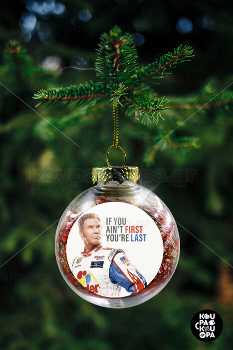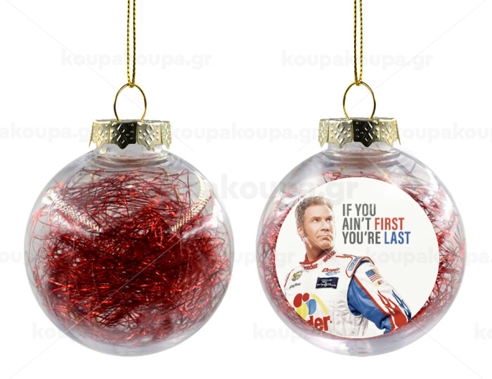 If You Ain't First You're Last Ricky Bobby, Talladega Nights, Transparent Christmas tree ball ornament with red filling 8cm