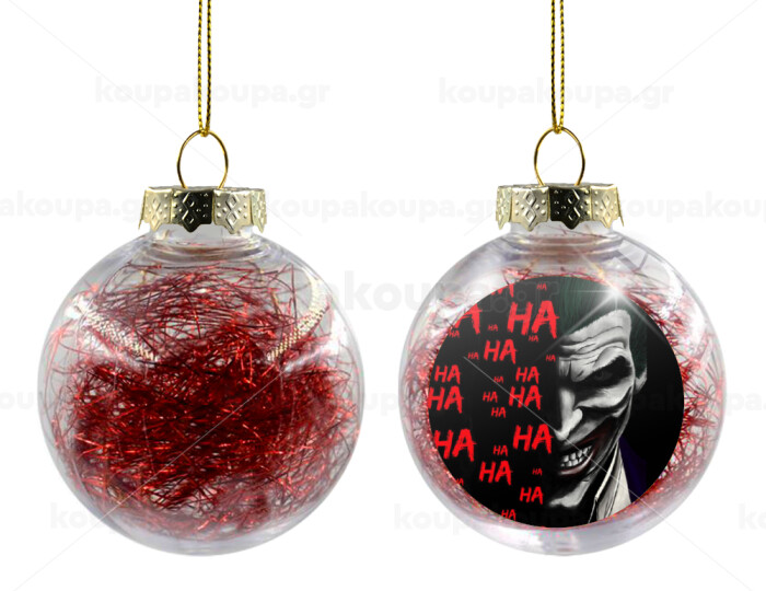Joker hahaha, Transparent Christmas tree ball ornament with red filling 8cm